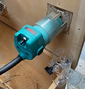 テーブルソー内側のトリマー、 やはり必要なので同型のと交換。 今は京セラのTR-51になってる。 ベースプレート、前のままで使えてOK。 |