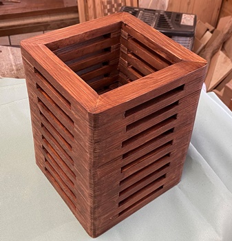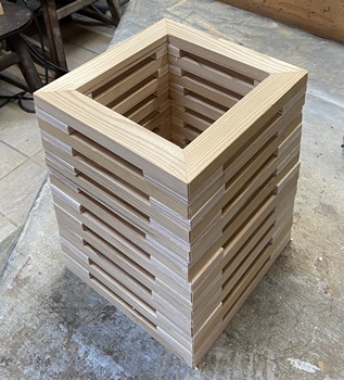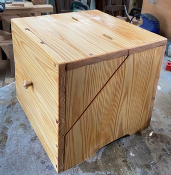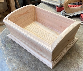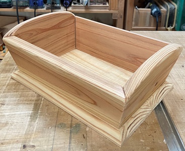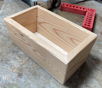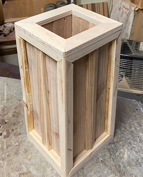15°カットの台形で小道具箱。上の開口部が18*25cm、深さ8cm。自分用。