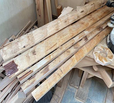 ヒノキの背丸板5枚組みを見つけた。
