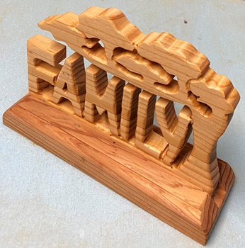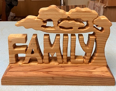 19mm厚の集成材で透かし彫り。幅25cm 高さ17.5cmのオブジェ。