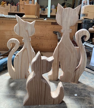 3cm厚の杉板でそのまま自立するようなネコの(シルエット)ファミリー。