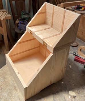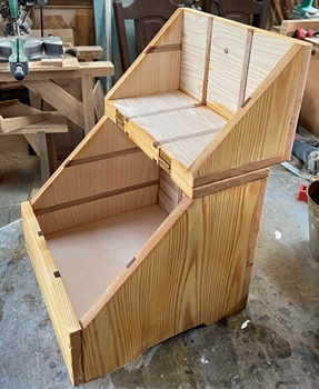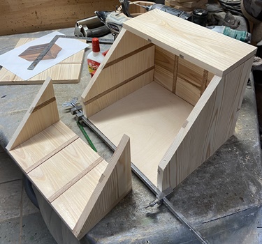 側板を左右カットして、三角形状の蓋にしてみたら面白いんじゃないかと。