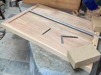 中が3cm厚板で56*85cm、周りを4.5cm厚板で5cm幅の額囲みで。
