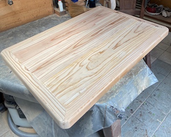 1枚板というわけにもいかず、杉板の接ぎ合わせで代わりの天板を。