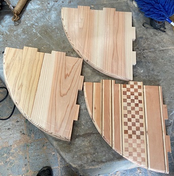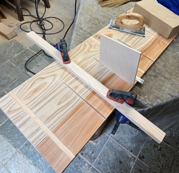 3cm厚の杉板をカット、削る削る。