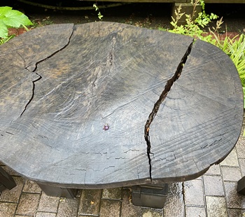 雨ざらしで風雪に耐えてきたテーブル天板、