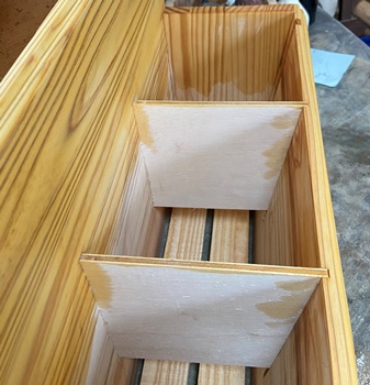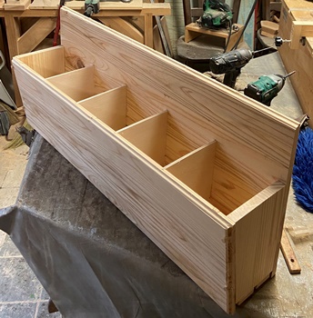 注文どおり、横85cmを約16cmずつ5等分の仕切りをつける。