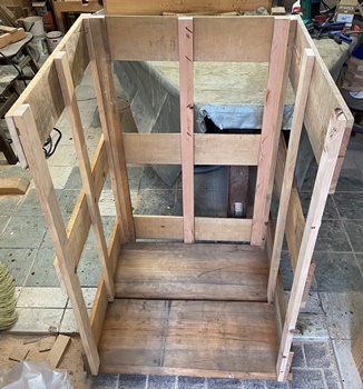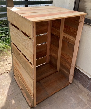 材は廃材のかき集め。縦横60cm、高さ1mのガッチリした高圧洗浄機格納ボックスにする。