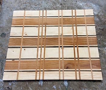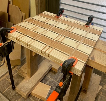 デザイン板、なんとか収めた。反りや硬い材などのせいで接ぎ合わせが凸凹だったのが、