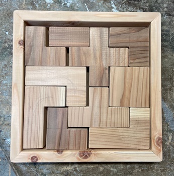 左が幼児向け9ピース積み木パズル。右がバンドソーの試運転でやった10ピース幼児パズル。