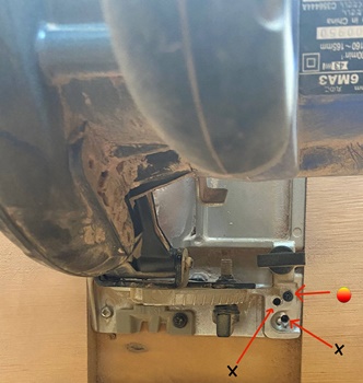 テーブルソーの丸鋸の押さえのビスが緩んでしまっている部分があり、作業するとカタカタ。