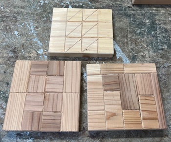 仕上がり寸法は左が28mm厚板で約30cm四方、右が3cm厚板で約29cm四方で収まった。