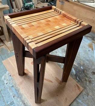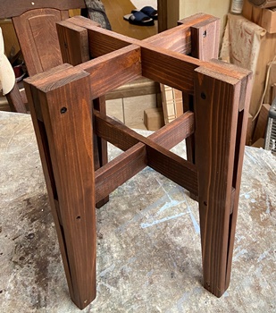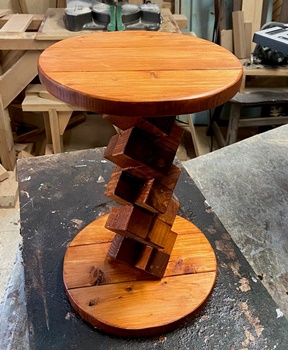 室内の置き小卓でもあるので最後にニスを塗っておく。 |