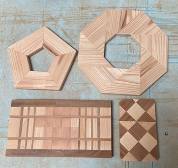 左上の五角形は、余り材でカット角度の計算などしながらのただの遊び。(^^;)