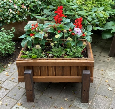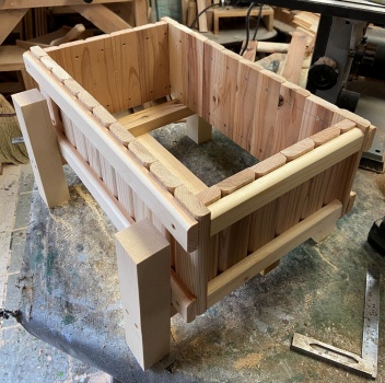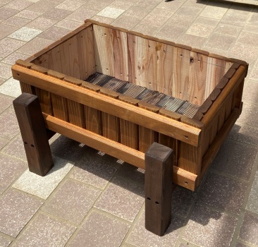 | 余った材で H形の脚組を作り、この後どうしようかと思ったがプランターを乗っけることにした。 |