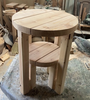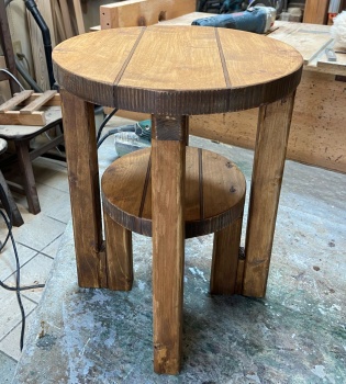 大小 2 枚の板で、2段になったスツールでもやってみようかと。 |