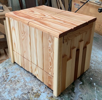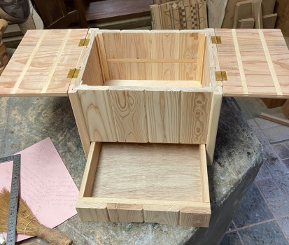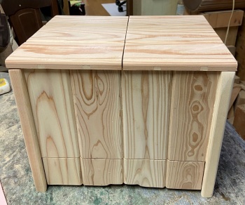 ほぼほぼ成形完了。蓋は観音開きにし、両袖から持ち上げられるので把手も付けず穴も空けずに。