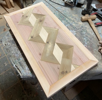テーブルの天板にでも出来たらいいなと思うデザイン板、4cm幅のフレームで囲んで、