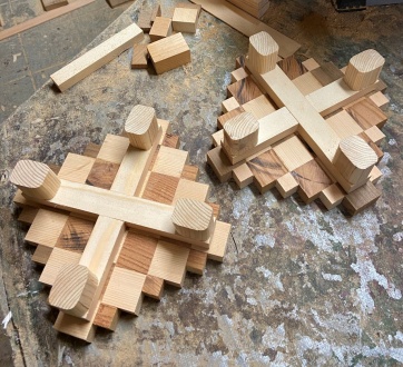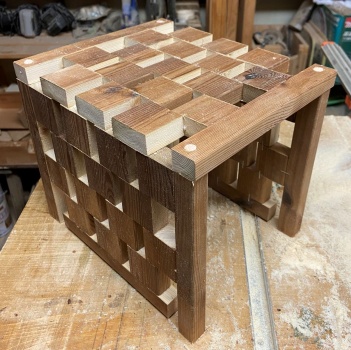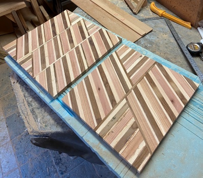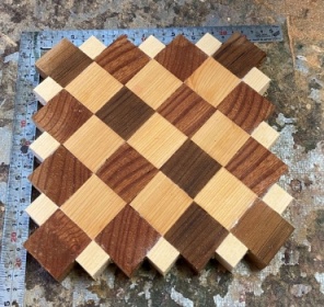 余った材でまたまた遊び。 38mm厚の色味の異なる材を23mm幅でカット、