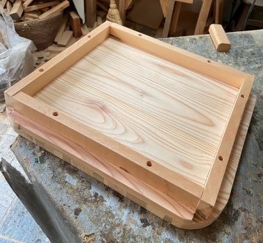 裏に12mm厚の杉野地板を貼り付けて 3cm厚の板にし、テーブルの天板に出来たら面白いかと。 |