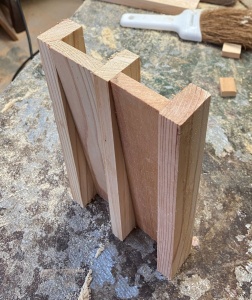 (左上はイメージ試作) 木口 30*40mmの垂木を30*19mmで縦挽きし、