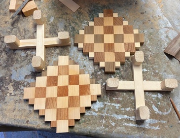 四角形の方はセカンドテーブルの天板辺りで使えるかも。 今回の製作は作品に到らず。^^; |