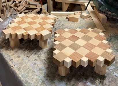 色味のコントラストのあるチェック模様のボード、余った材があったので赤白並びの反対なボードも作った。