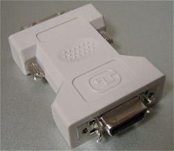 DこちらがDVIデジタル24ピンのオス。ビデオカードのDVI 端子は使ったことがなかったのでしたが、この度初体験。 休ませてあったHerculesのRADEON 8500LE を 3rd PC に挿す。 M/Bのオンボードチップだけで動いていた3rd PCでしたが、デジタル液晶モニタを生き返らすためにビデオカードが刺さった。 結果…大成功 !! きれいに色をだしているのです。(^_^)V ジャンクもので長い間使っていた(これも某メーカー製の多分OEM流れ)17inchCRTモニタが、却って大きい粗大ゴミとなりそうです。 |