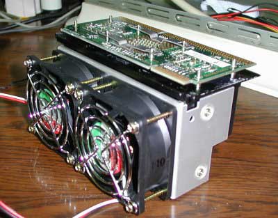 2ファンでも上側のファンだけずらして装着。 これで、電源コネクタ部との干渉を防げる。 板バネのような金具差込式なので ヒートシンクのどこにでも差せる。 ただ、風切り音はかなりやかましい。 |