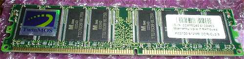 なにもメモリを大写しにすることもないと思うけど、これがそもそもの始まりなので。 メインのシステム不安定なのを頭に抱えたまま、東京に出張。(6/25~26) 1日目の夕方、ブラッとアキバによって、安くなったDDR SDRAM 512MB をゲット。 で、DDRメモリを挿す板がないままでもどうにもならないので、 ついでにKT333チップなM/B(AK77-333)を選択。(これで嵌った...これはまた別のところで) World Cupで忙しかった(...だれが?)のと、仕事も煮詰まっていた時期と重なっていたこともあり、 私にとっては珍しく、しばらくとっかからず温めていたもの。 それと、メインに移すよりもサブに入れた方が交互にグレードUPできていいのかな..などと 考えていたこともあって、ついぐすぐずしてしまっていた。 |