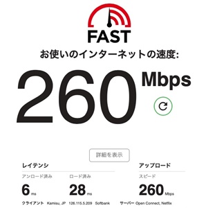 回線を変えた機会でもあるので、久しぶりにちょっと回線速度測定をやってみる。 |