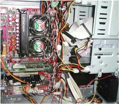 ![]() 余剰パーツで一番力のある雷鳥700をOCなしで (嫁入りらしく..?)赤M/B(K7VM)にのせる。 黄金指いじりはメンテがしにくい所では心許ないので見合わせる。 CPUクーラー(ALPHA P7125M60)がでかいせいで、 HDDの出し入れでぶつかるのが難。 ビデオ(G400)とサウンド(Xwave6000)だけの単純PCIスロット構成。 |