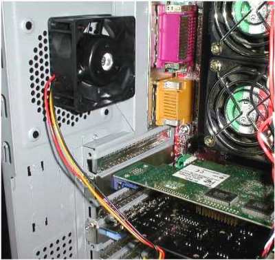 ![]() 排気ファンは喧しかったHedgehog-238M改造で使った三洋製の6センチケースファンで間に合わせる。 背面パネルの穴は8センチ用で、1カ所だけのネジ止め。 まぁまぁ効いてるようで、とりあえず大丈夫ということに。 |