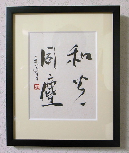 ![]() 突然、どうしたのだと思われるでしょうが...。 この3月、そして4月と、身辺慌ただしく、東日本大震災とはまた別に、生活リズムに大きな変化があった春でした。 そんな折りに、書家としても著名な「幽峯」氏から書をたて続けにいただいてしまいました。 仕舞っておくのも勿体ないので、壁に掛けてみたところです。(床の間がないのが何とも残念なのですが。) 小さめのお洒落な額に「和光同塵」、そして立派な掛け軸に「只在目前」の文字。 価値のよく分からない私などが見ても、なんかすごい書が部屋の空気を引き締めてくれているのを感じます。 読み方や意味など教えてもらったり、調べてみたりしましたが、う〜ん、なるほどなぁ...、深いなこれは...と、考えさせられます。 「和光同塵」に、ちょっとでも近づけるような生き方ができたら素晴らしいのでしょうね。 「只在目前」は、禅問答でもあり哲学でもあり。 こんな文字を見ていると、自然とキリッとしてくるような気がします。 勿体ないようなすごいものを頂いてしまいました。 本当に有り難いことだと感謝するばかりです。 |