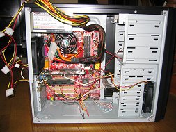 ![]() 普通のATXケースなので取付は特に問題なし。 ちょっと気になったのは、電源とCPUクーラーが位置的に微妙に近く、電源ファン、排気ファンと合わせてファンが3つ近寄ってしまった。 ケースは吸気と排気ファンがどちらも12pもので、近頃の静音化をかなり意識している。 M/Bの取付で、もひとつ気になったのはケースにスペーサ用の丸穴がなく、台形のちゃちな金物がスペーサとして付いていたこと。ショートするんじゃないかと心配したけど、ネジにワッシャーかませただけですんなり通電した。 |