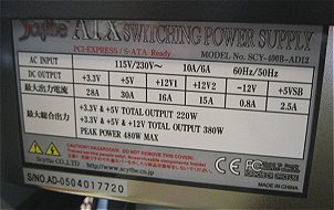 ![]() PCをプレゼントするにも、ハコとモニタぐらいはピカピカでないと嬉しくないだろうから(手持ちも無いので)購入。GMC H-60 phoong(400W)を見栄えの良さで選択。 8.5k で400W電源付いたケースなんだから仕方ない。 電源はScythe という聞いたことないメーカーのSCY-400B-AD12というモデル。出力スペック見ると余裕で使える。 |
