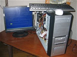 ![]() 特別なトラブルもなしにセットアップ。 キーボード、マウスは休養させてたのをみっちりとみがいてお出かけ用に。たまたまケースの色と同じ銀色&黒のキーボードが休んでいた。 HDD というのは余ってるのは案外とないもので、ショップで安く買えたふつう?のATA100なDeskstar/80GBを1本入れる。80GBあればたいがいは足りるでしょう。 |
