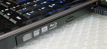 ハンドレストに当たる部分の格子縞模様がなかなか恰好いい...と言う人もいる。(左) ブルーレイデスクドライブをもってるってのは、今どきは欲しいポテンシャルでしょう。(右) |