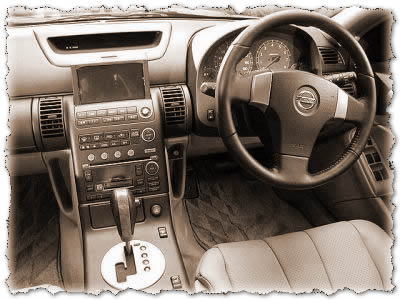 ナビが飛び出てくるコンソール、なかなかかっこいい...んではないか。 加速やコーナリングなど、たしかにSKYLINE の感触が伝わってくる。 まだ必要なボタンやスイッチがどこにあるのか分からないで乗ってる状態。 |