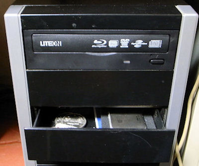 システムを大弄りしたついでに新調したのがこれ。Blu-rayドライブを導入。(LITEON iHBS212 12倍速) これまでのが、開閉エラーや認識の遅さなどヘタってきていたことと、\7.8kと、以前と比べてずいぶん安くなっていたことから。 SATA接続で、速度のスペックは...BD-R(12*)、BD-R DL(8*)、BD-RE SL/DL(2*)、BD-ROM SL/DL(8*)、DVD+/-R(16*)、DVD+/-R DL(8*)、DVD+R RW(8*)、DVD-R RW(6*)、DVD-RAM(12*)、DVD-ROM(16*)、CD-R(48*)、CD-RW(24*)、CD-ROM(48*)...と、必要十分。 iHBS312 との違いは、BDの+Rが対象外となっていることぐらいなのだろうか..? 添付のアプリCDに入っていたPowerDVD ver.10 が嬉しいおまけ。 WinDVDのver.9がこれまでの再生環境だったので、思わぬアップグレードとなった。 ほかにも焼きソフトなど使えそうなのがいくつもDisc Suiteにまとめられてある。 3段目の5インチベイには、まだ現役でも使えるCPUなどが格納されており、物理的にデュアルな? CPU を積んだPCといえる。...?? |