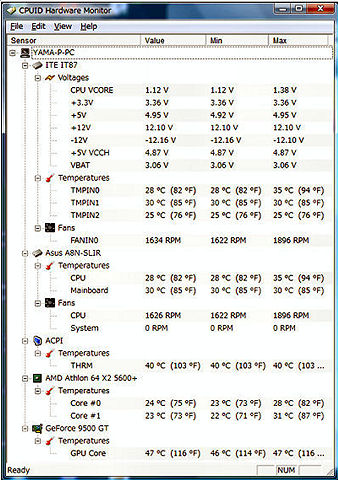 ![]() しばらく前に、使って便利なユーティリティソフト(殆どがフリーソフト)について覚え書きしましたが、今回はその第2弾。...というほどの大袈裟なものではなく、ただのヒマネタです。 左のデスクトップアイコンの@に置いた HWMonitor がとっても使いやすく便利なもので、A以降はいつの間にかデスクトップに居座り続けている便利ソフトなものですから、ついでにご紹介。 HWMonitor は下のURLで落とせます。 http://www.cpuid.com/hwmonitor.php HWMonitorProバージョンもありますが、こちらの方がわたしの場合使いやすい気がしています。 CPUやVIDEO回り、システム全体の温度はこれからの季節とくに気になるところですが、このソフト一つでおおよそ分かってしまうってところが大したものだと思います。 昔はマザーボードの温度センサー(P2T Cable)など、小物パーツを一生懸命に探して取り付けたものでした。 |