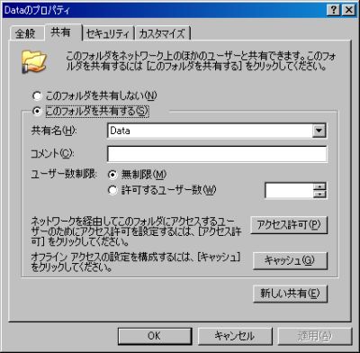 たとえば \Data というフォルダの共有。